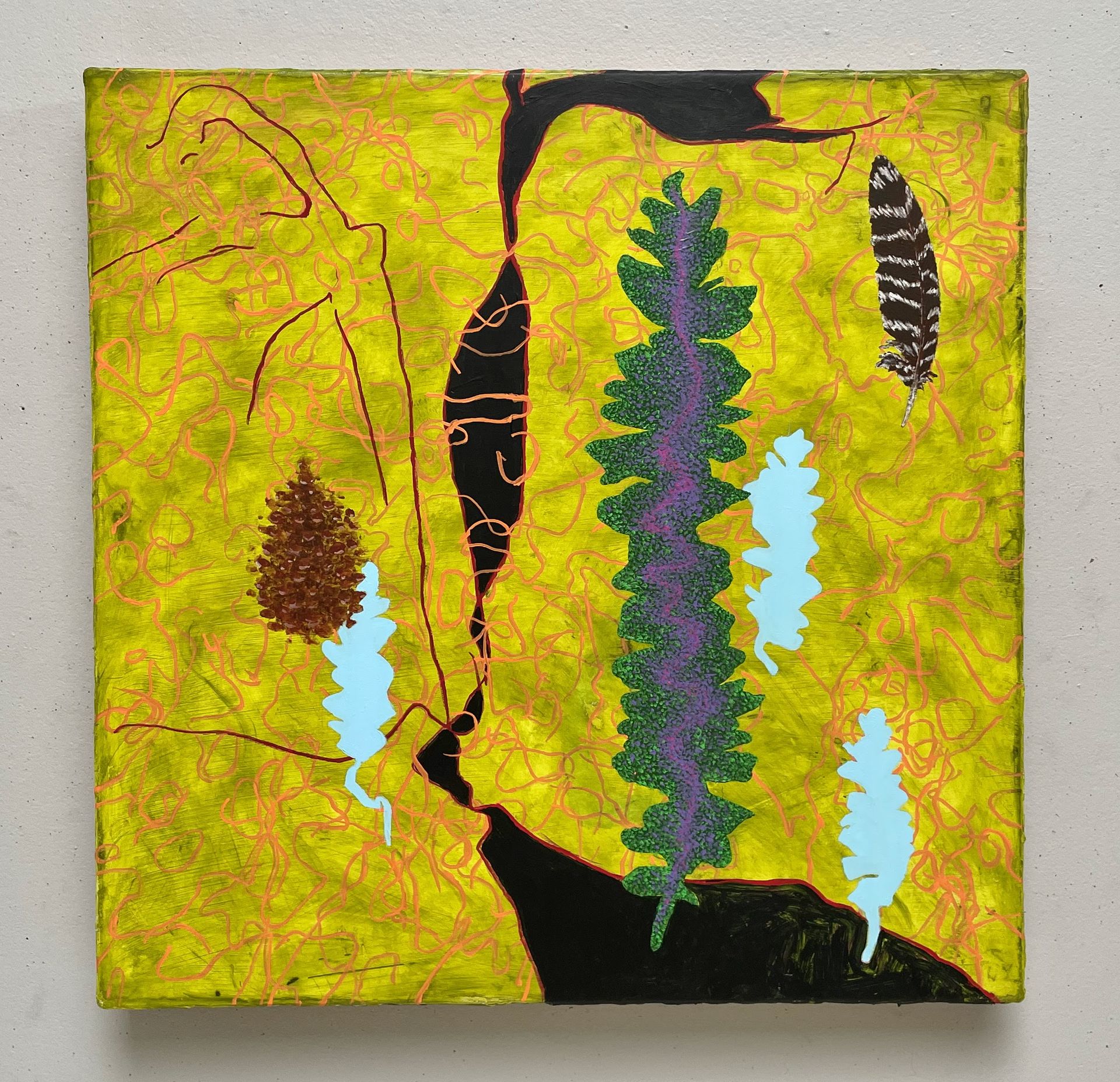 In the pines takes its name from the traditional American folk song; more for its atmosphere than content. The work is born out of a free-floating longing; the grief and the whatness of ordinary objects; the ineffable mystery hidden in the everyday; and, at the same time, it’s as if the Bugs Bunny Roadrunner Hour were extruded through a Zen kōan into a space where wildness and culture, its myths, rituals, music, and poetry come together like spokes in the hub of a great wheel. Having been painting and drawing for several decades, I feel that I am finally making some progress; more fully realizing a visual language that I can trust; that I can have faith in. Which is to say, that although my doubt is boundless, I persist in turning that wheel.